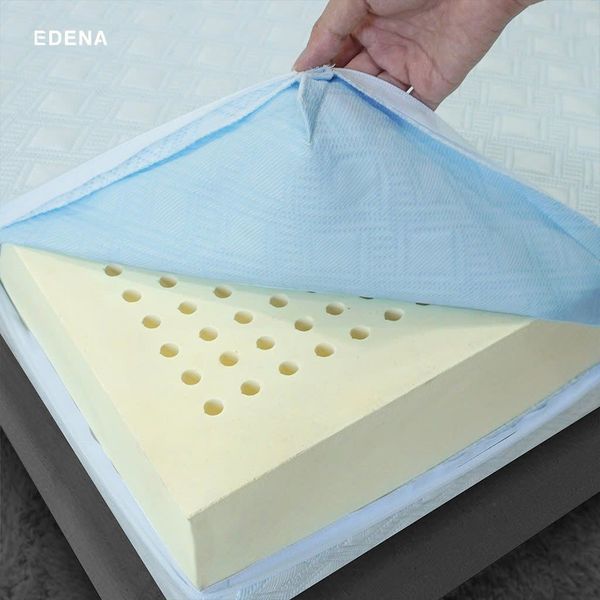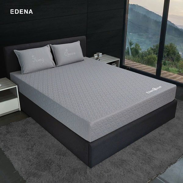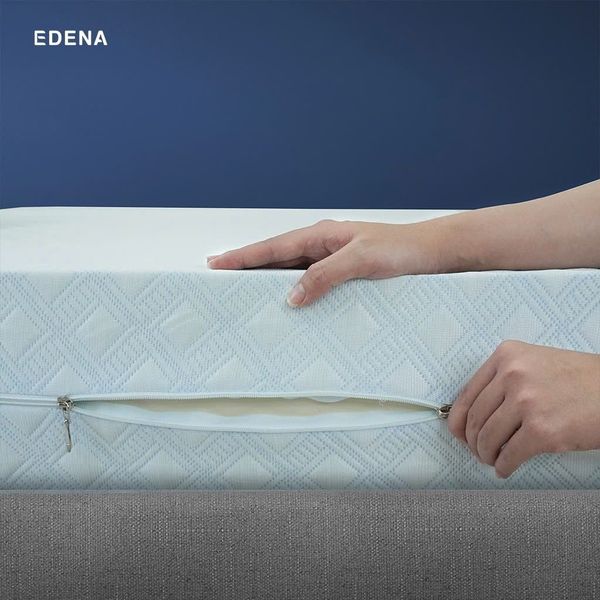 - Không những vậy, Nệm cao su thiên nhiên Edena còn được bảo vệ với lớp vỏ bọc từ gấm Knitting tăng thêm sự êm ái, sang trọng, đồng thời bảo vệ khối cao su bên trong, giúp tăng tuổi thọ của nệm.