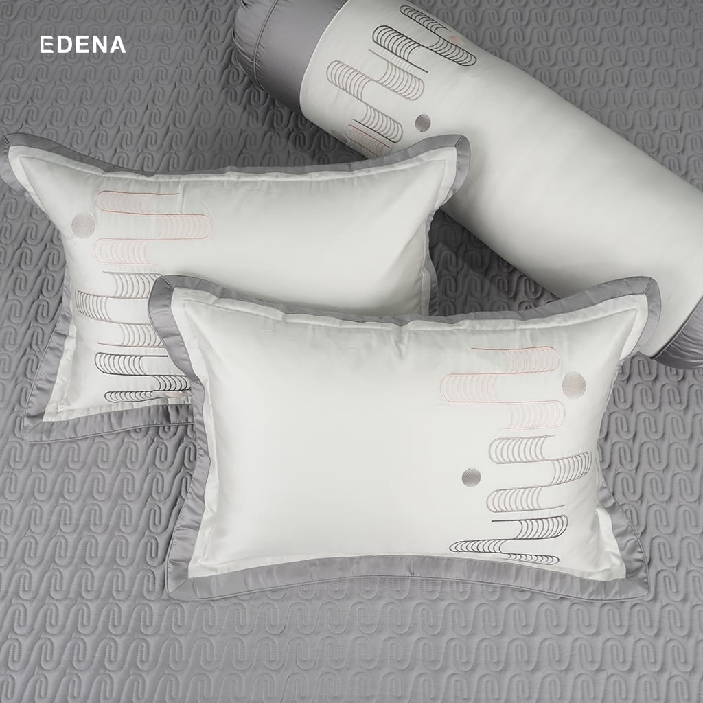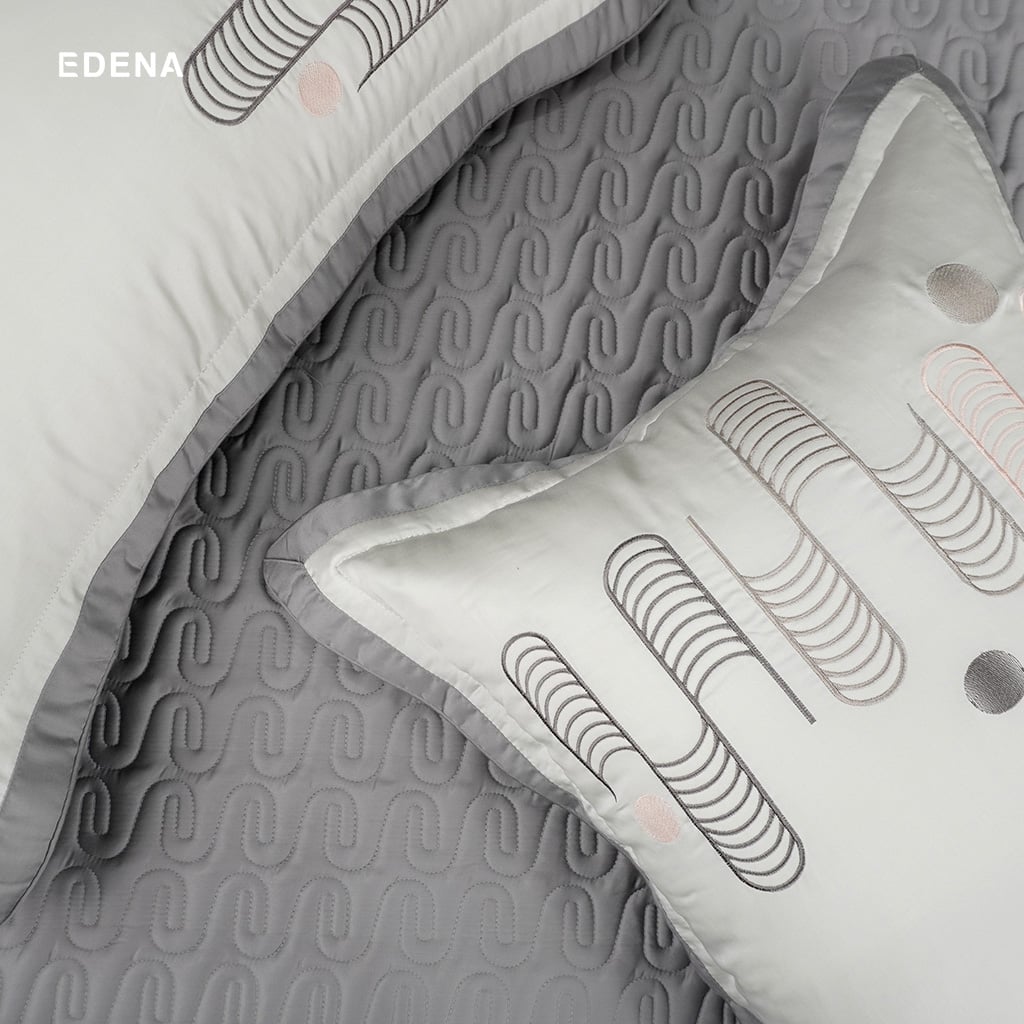Họa tiết được chăn ra gối nệm Edena sử dụng cho bộ sản phẩm hiện đại kết hợp với bề mặt vải mịn màng mang lại sự sang trọng, tính tế cho căn phòng ngủ của bạn.