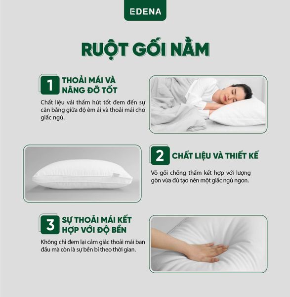 GỐI NGỦ CAO CẤP EDENA - RUỘT GỐI EDENA MANG GIẤC NGỦ NGON ĐẾN MỌI NHÀ