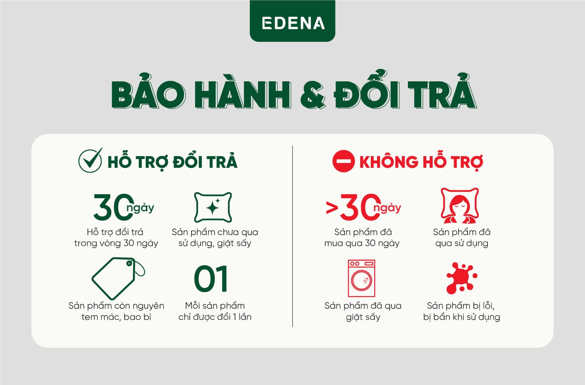 Edena cam kết 100% hàng chính hãng, nguồn gốc minh bạch và kiểm định chất lượng rõ ràng, giúp khách hàng yên tâm mua sắm và nhận đầy đủ quyền lợi bảo hành. -