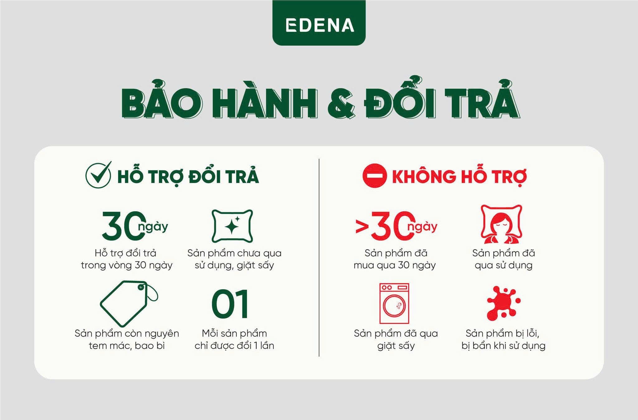 Edena cam kết 100% hàng chính hãng, nguồn gốc minh bạch và kiểm định chất lượng rõ ràng, giúp khách hàng yên tâm mua sắm và nhận đầy đủ quyền lợi bảo hành. -