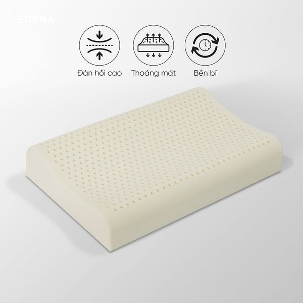 Gối cao su thiên nhiên gợn sóng có tính đàn hồi hiệu quả, không bị xẹp lún và luôn giữ phẳng mặt gối. Vỏ gối là lớp vải Cool nhập khẩu cao cấp, dòng vải mới nhất từ Edena với thành phần tự nhiên không pha lẫn bất kỳ tạp chất nào khác. Khả năng điều hòa vùng tiếp xúc, làm mát và tản nhiệt một cách tự nhiên cho bạn cảm giác nằm thú vị hơn bao giờ hết.